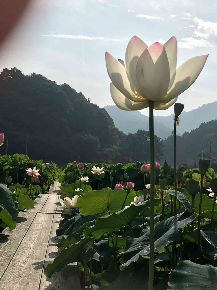 山の景色と青空と…蓮🌼癒されます〜🎶(´✪ω✪`)♡.*・゚ .゚・*.