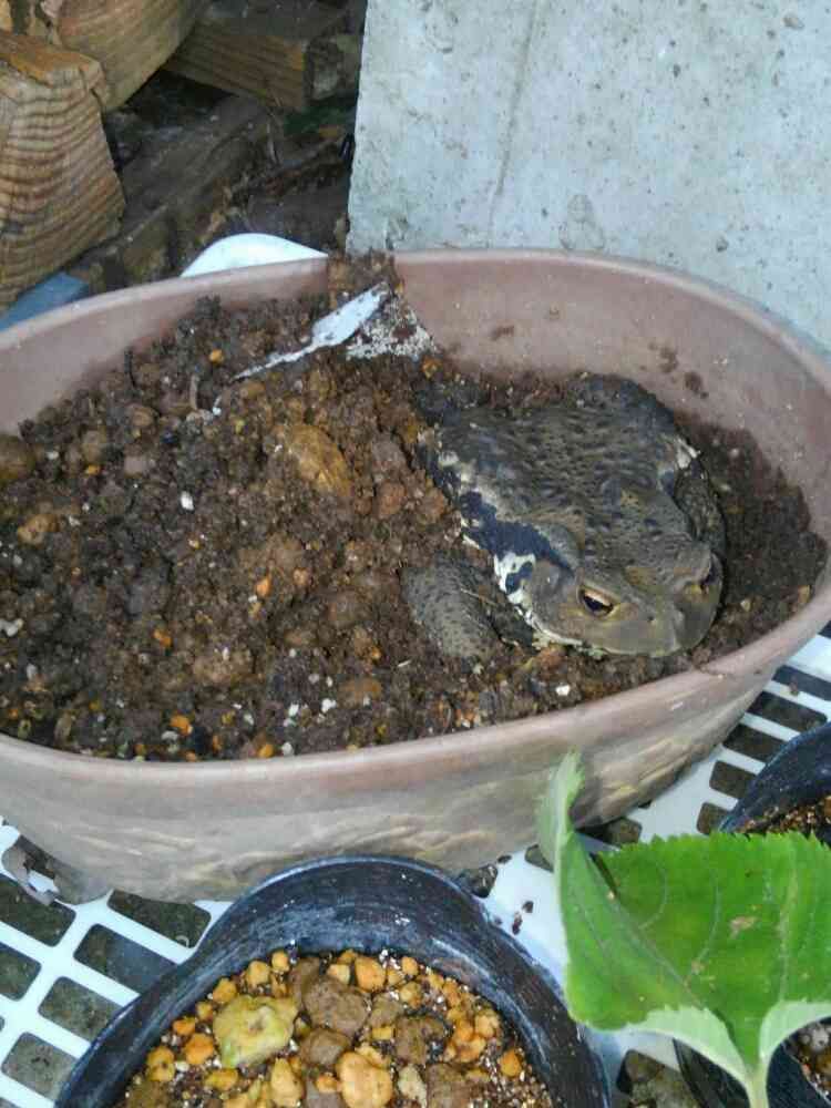 クリスマスローズの種を植えて半年以上水やり続けてきた鉢にヒキガエルが潜り込んでた!