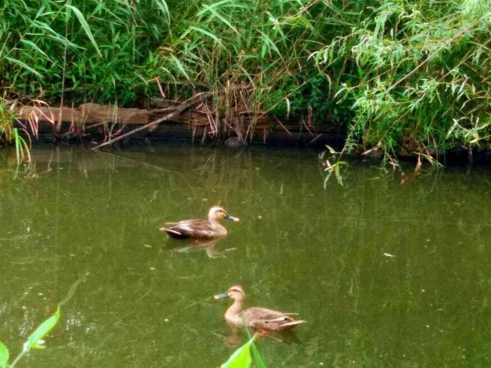 水辺の里に立ち寄りました。池に、カルガモの子供たちが泳ぎ、お母さんは岸辺で、子供たちを眺めていました。