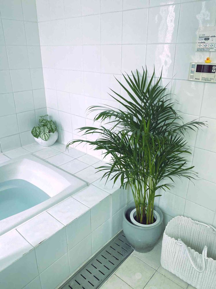 お風呂場に、こんな大きな観葉植物置いてるんですね❣️湿気とかは大丈夫なんですか?因みにテーブルヤシですか?