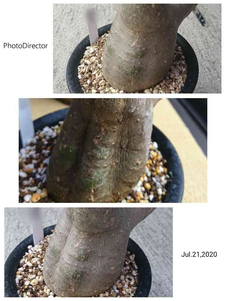 軒下の端に置いていたので痩せてしまったマカイエンセに気づかなかった、真ん中の写真が今月14日、下段が16日、上段が21日です、戻って良かった