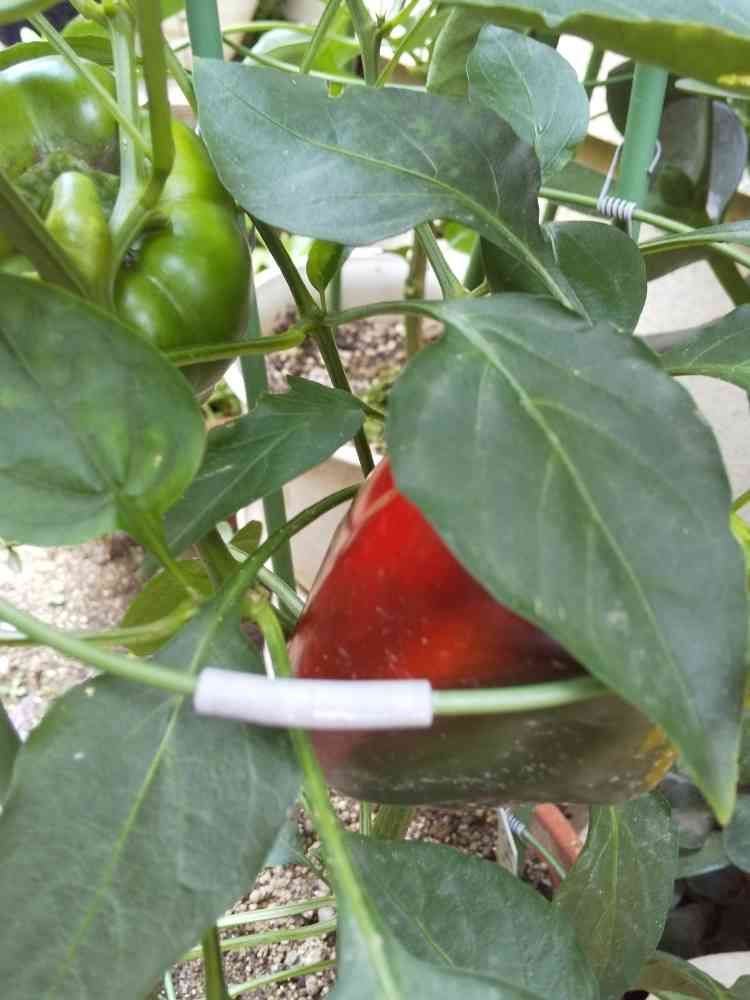 パプリカやっと、半分赤くなりました、やはり、お日様はありがたいものですね。🎵⤴️⤴️👏