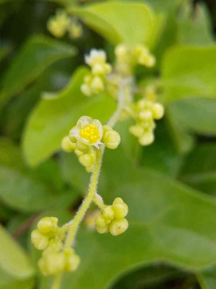 雌雄異株でこちらは雄花のようです。何枚も蚊に刺されながら撮りましたが、、、、😥。小さな花で6枚の花弁の先はM字状になってます。