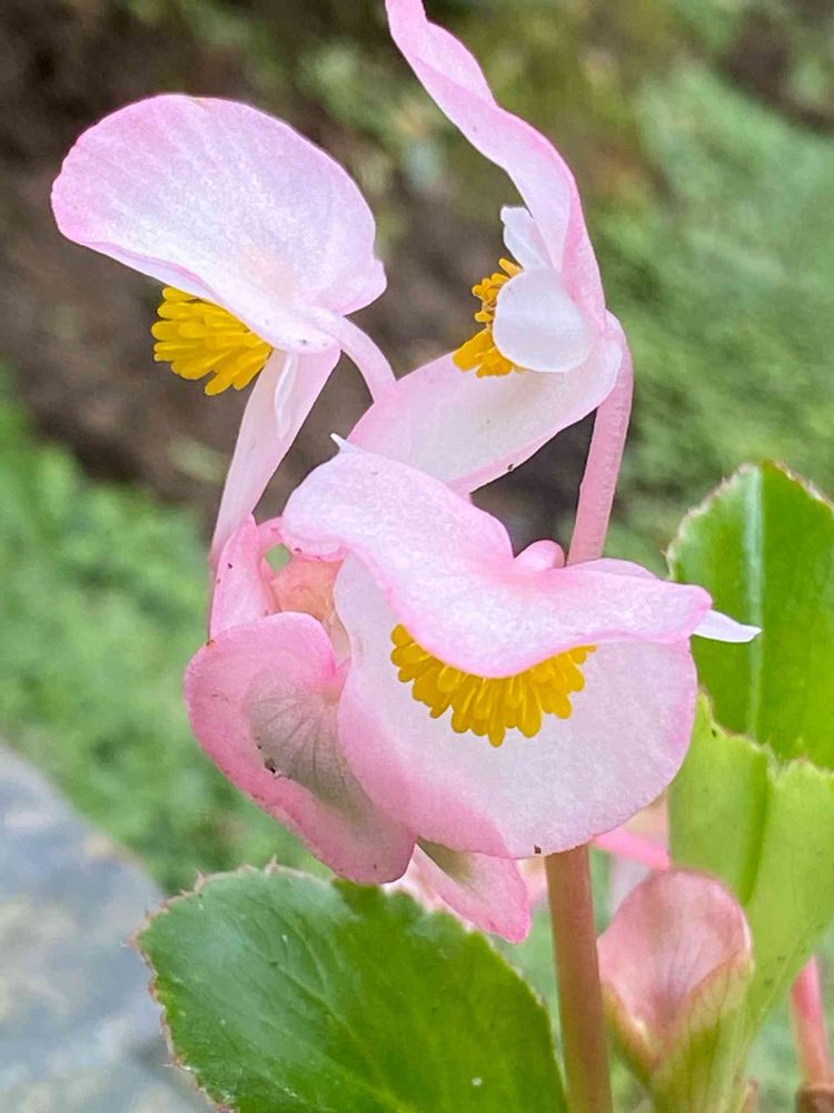 この枝のお花は北北西向き。そして下向き。薄ピンクのお淑やかなベコニアさん🌸