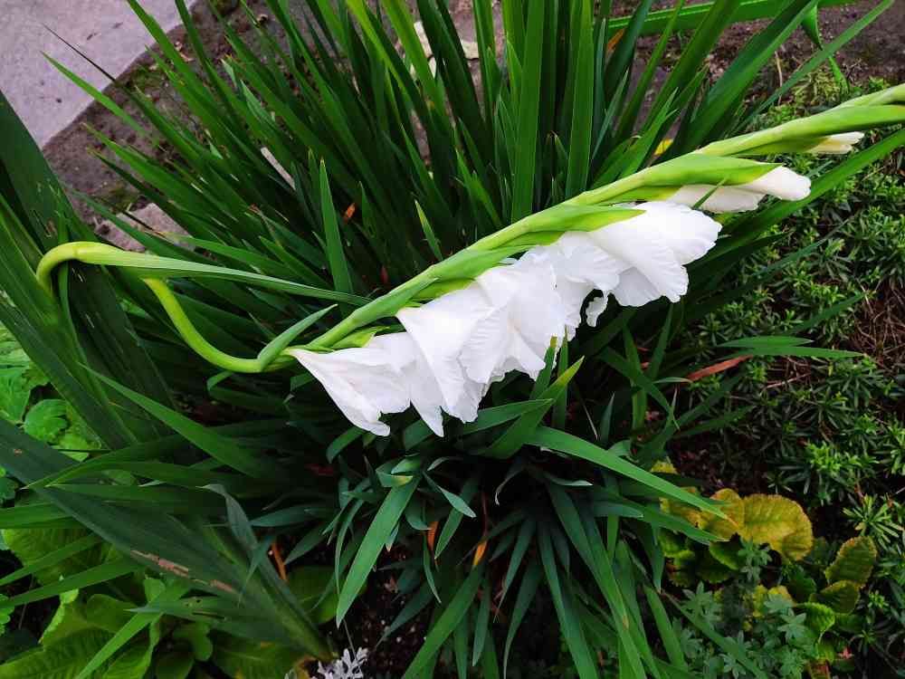 一輪だけやっと花芽が上がってきたグラジオラス、先日の大雨でボキーッ⚡っと😱