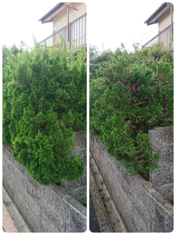 昼から時間があったから、カイヅカイブキの垣根の手入れをしました。
