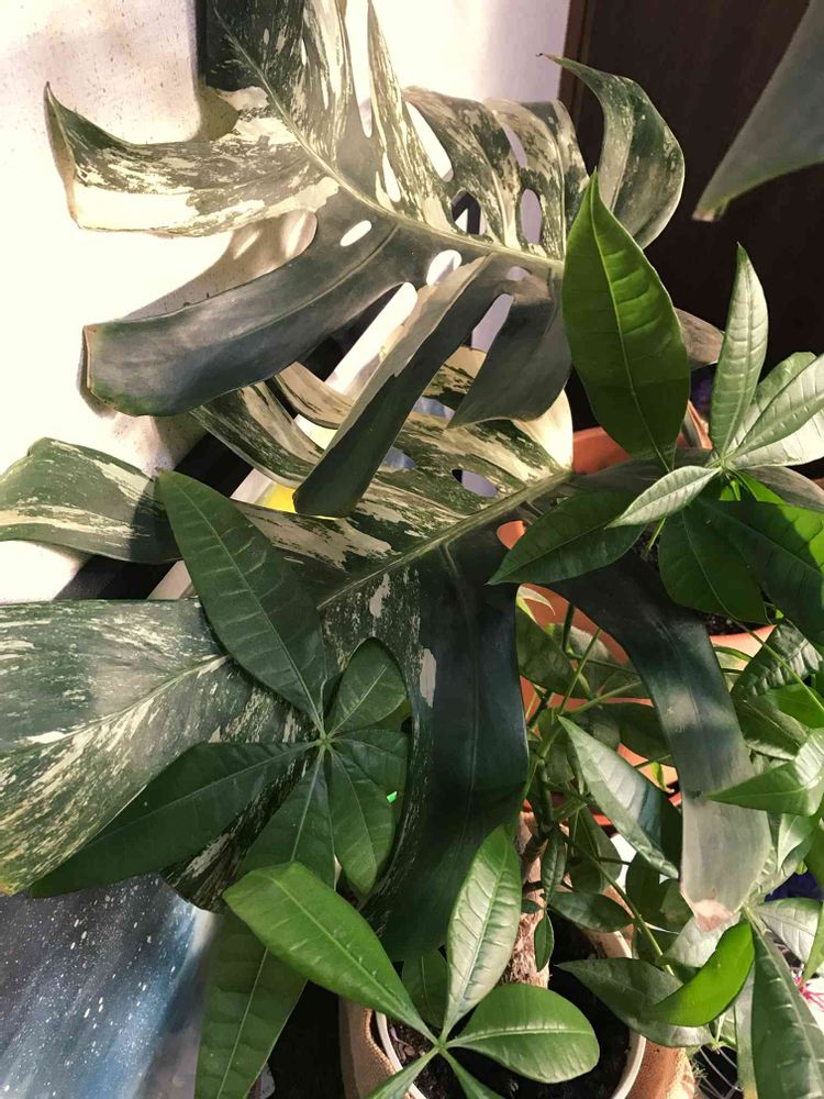 こちらは斑入りモンステラとパキラです。
