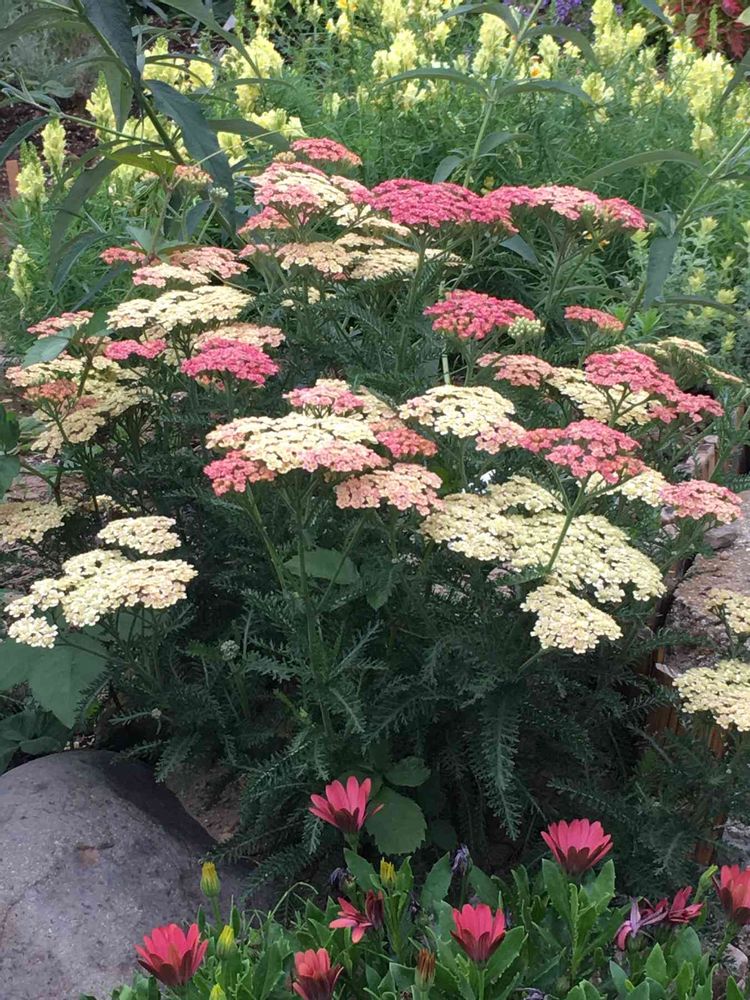 逞しきアキレア、他のひとたちを駆逐しないように石の間に追いやられましたがこんなに咲いてくれました😅