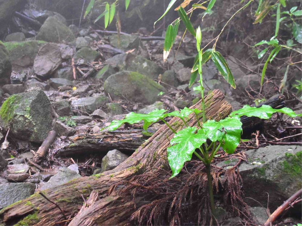 水が流れ落ちるような登山道に生えてたこれ、私的にはウバユリの若芽にしか見えないんだけど、こんなとこに生えるかなぁ❓