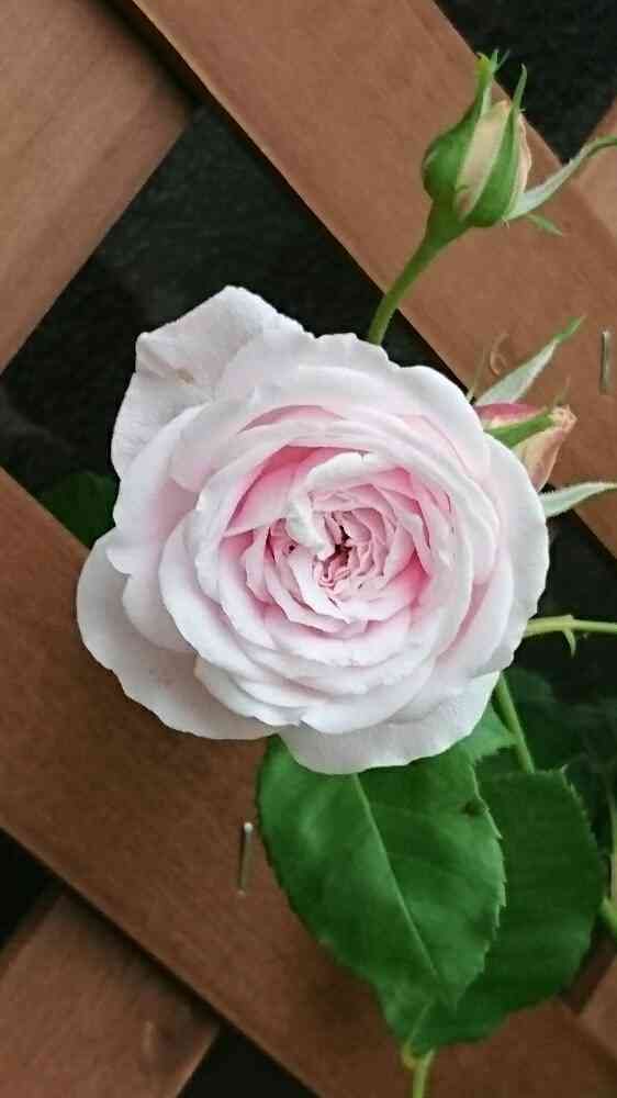 マリーデルマー🌹可愛い顔して けっこうなお転婆さんで枝があっちこっちにびゅーんと伸びて先に2つ3つ咲いてる感じ(笑)😁どうしていいものか悩み中…(´・ω・`)