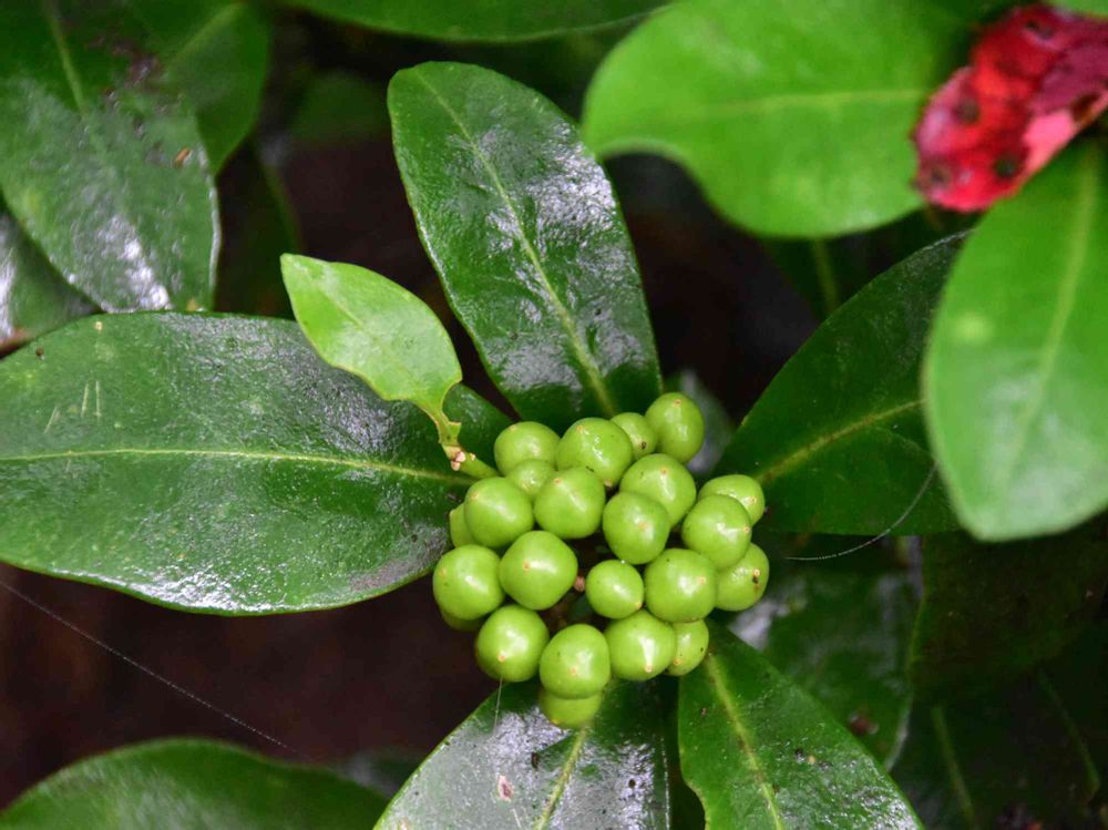 遅くなったけど、緑から白、赤に変わりつつあるミヤマシキミ、2020.9.30に投稿しています。さらに艶々の真っ赤な実をつけたのは、最近の投稿で載せてますのでよろしければどうぞ😄