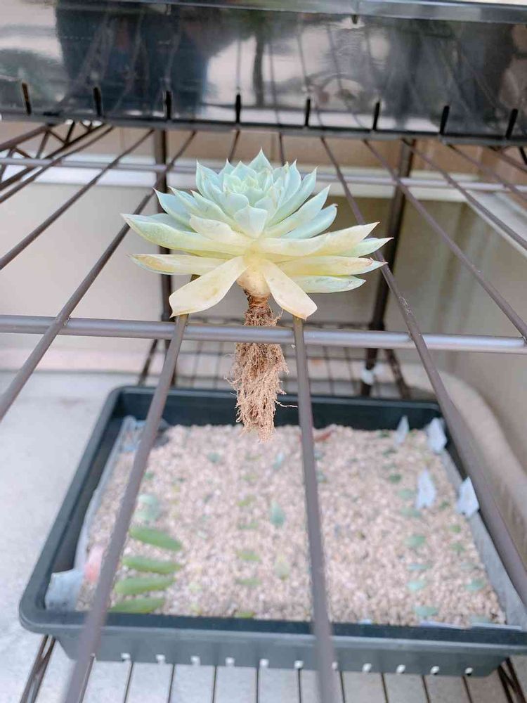 消毒をしたハサミで✂して2~3日切り口を乾燥させてから乾いた土の上に置きます。