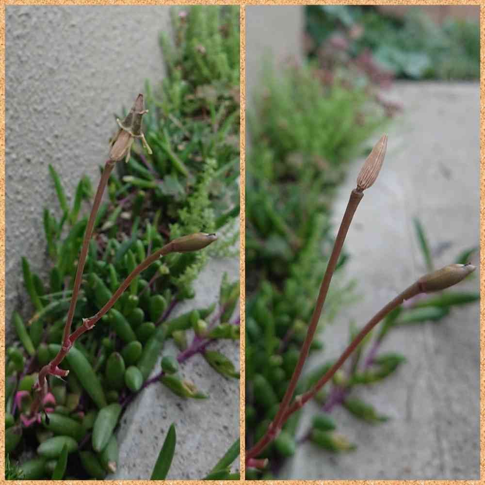 いつの間にか咲いてたんだなーと思いつつ、ルビネと芝桜のからまりをほどいてたらぶつかったのかポトって…みたら帽子が落ちたみたいに完全にさや!