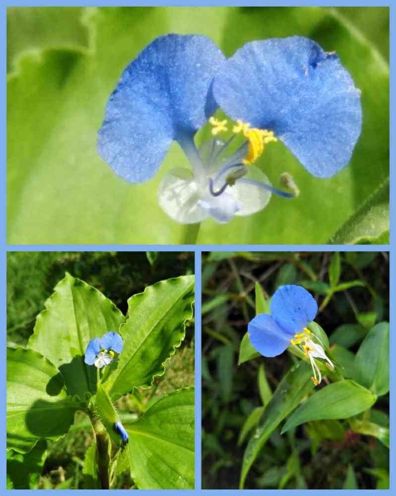この間、通勤途中に小さくて上の花びらがブルーで、下の方に白っぽい花びらがついているツユクサを見つけたのよ❗️