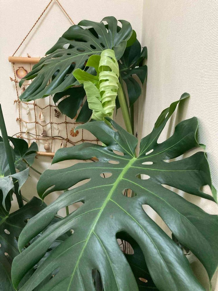 モンステラ室内羨ましいわよ🙋♀️うちの斑入り今成長して葉っぱ増えてきた🕺✨ベランダいるわ🤭
