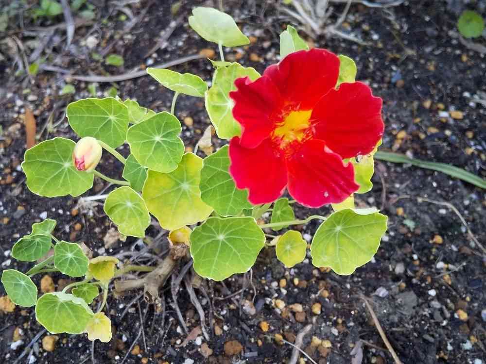 春に咲いていた、ナスタチューム枯れたようになっていたのに知らないうちに、咲いていました〰️💖春に種をとったので、時期をみて、撒いてみます~