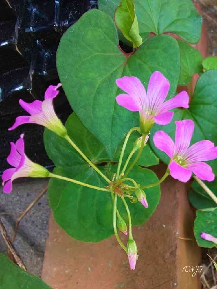 庭の外れに増えつつあるドクダミに混じり、顔を出してきた💮ムラサキカタバミ💮