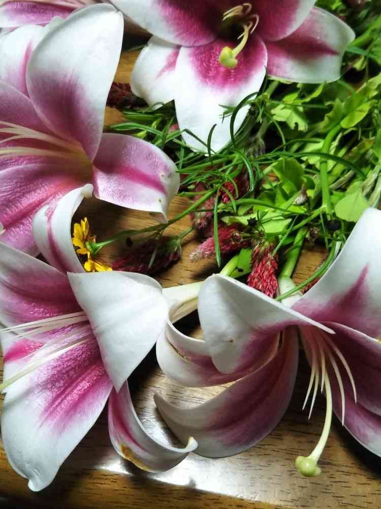これは、百合の花を職場の友達にプレゼントする為に束ねたPICです。