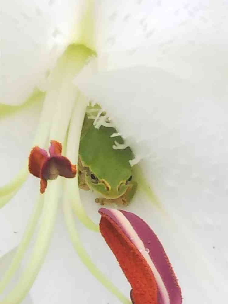 綺麗なお花の中に可愛い🐸ちゃん🎶