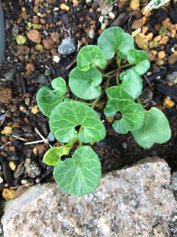 植えた覚えはないけれど、ジワジワ葉を増やしてきました。我が家でよく見る雑草ではいないタイプです。この葉っぱは何でしょう?
