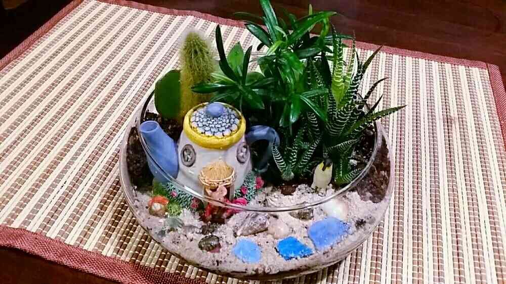 100円ショップのガラスの器を使って寄植え