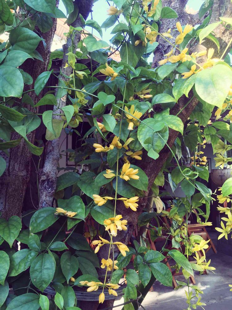 蔓性で、毎日黄色く小さい花を数えきれないくらい咲かせてくれます。成長が早いので、油断していると地面まで伸びてしまいます。