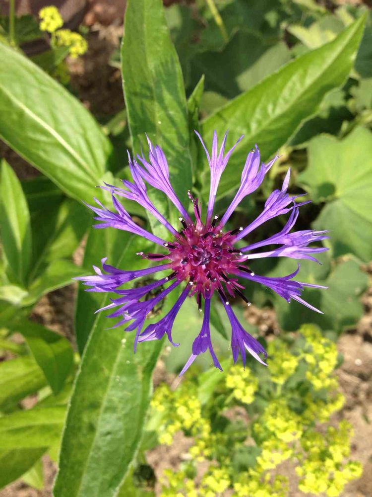 春先に「この葉っぱ見たことないなあ、去年の秋に何植えたっけ?」と楽しみにしていたお花は、セントーレア モンタナでした。なかなか個性的な花姿ですよねー。