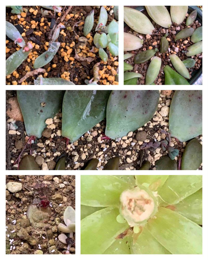 居ない隙を狙って葉挿しの根っこに少しだけ土被せて水を掛けました。