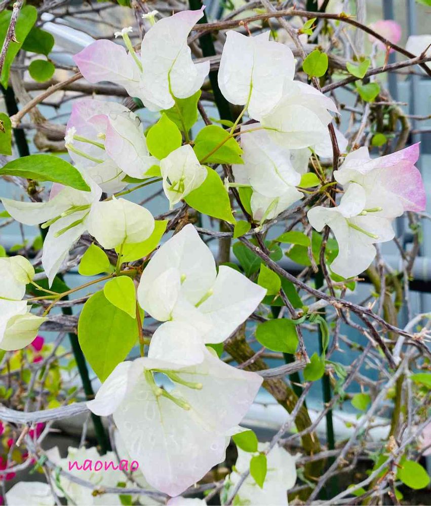 白のブーゲンビリア、少しピンクもあって素敵です。綺麗ですね✨香りもいいのですか?