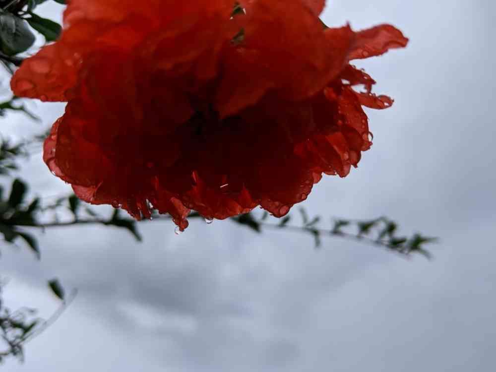 ザクロの花がまた、遅咲きで、2つ咲きましたょ!😄喜んでいいんやら、そうでないのか?自然は、不思議デスネ!今の気温に関係しているかな?,🥺😱