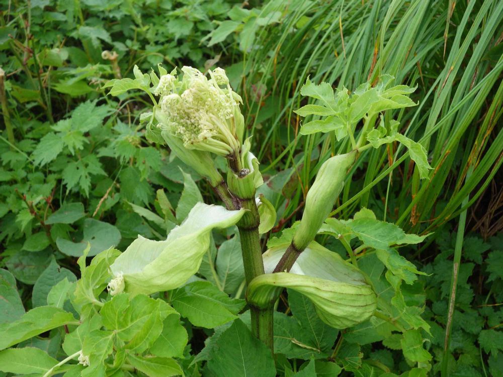 セリ科の多年草で、傘状の白花花序が沢山付き大型でよく目立ちます🧐