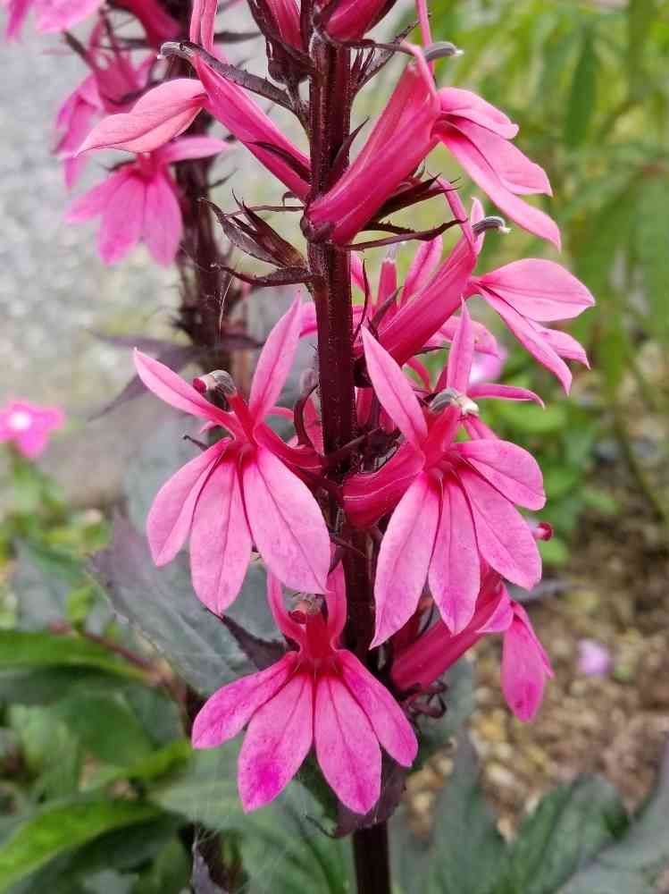 私も好きです。日本にあるサワギキョウは山の湿地に紫色の花が咲いてますがロベリアとは言いません。写真のサワギキョウは北米原産のもので園芸用に流通しています。どちらも特徴のある花ですね。
