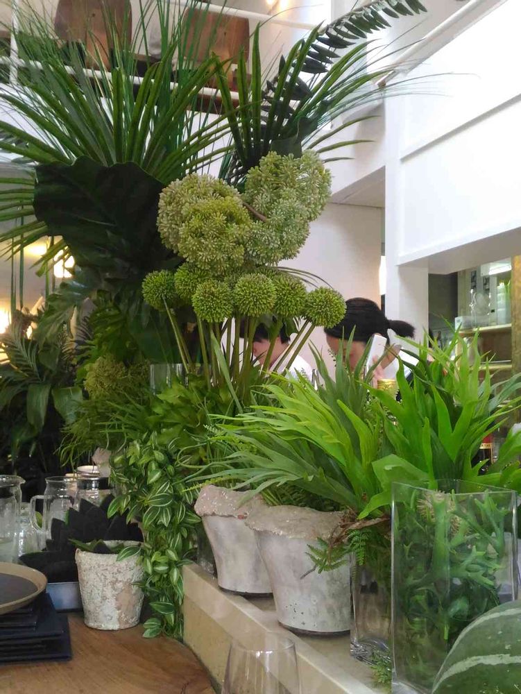高い天井に沢山の豪華なグリーン