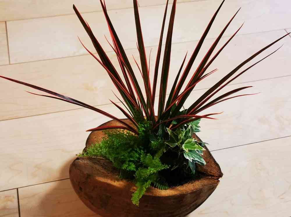 椰子の実に寄植えした植物をGET。植物は他の鉢に植え替えて、椰子の実にティランジアをアレンジするつもり。