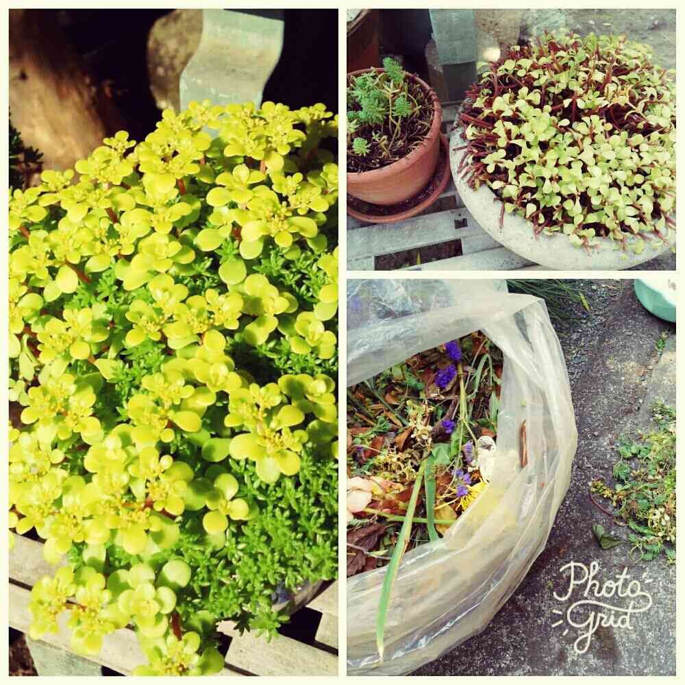 ごみ袋から広い集め回収しました。セダム丼頑張って試みます。根付くといいけど…