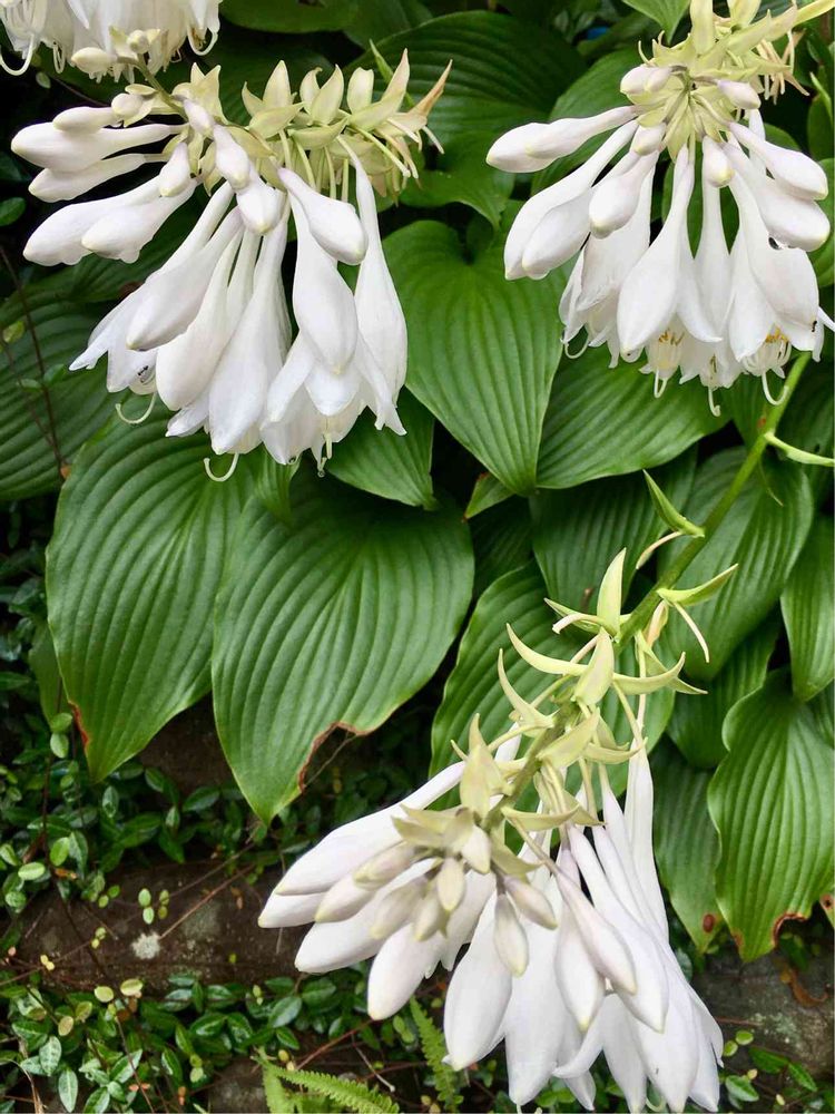 真っ白な蕾がたわわに付いたギボウシ🤍