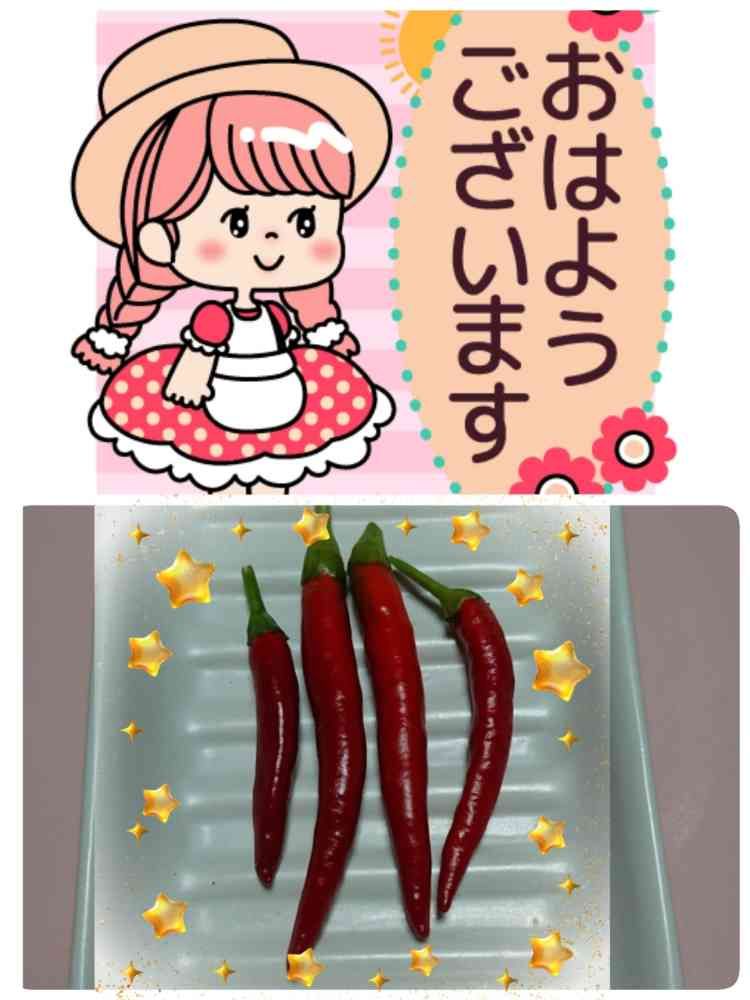 おはようございます😁今日は4時起きで長崎県に行ってます残念、長崎県大雨です、でも真っ赤な唐辛子🌶️見たけん、ばり💪昼飯迄。