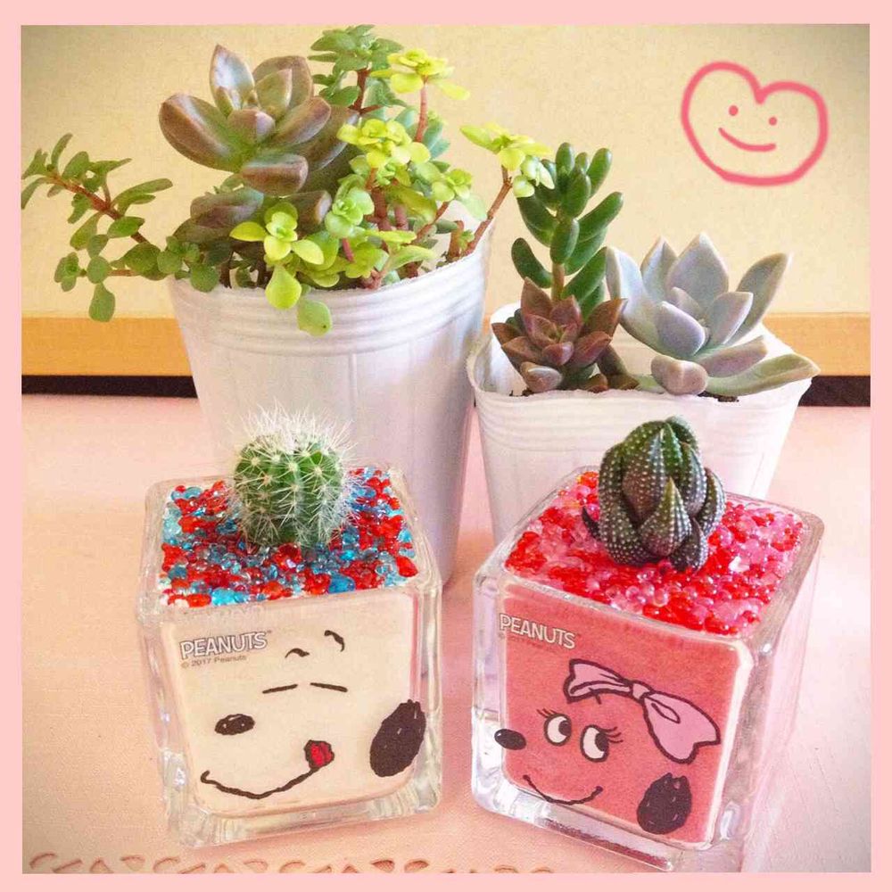 ローソン限定のスヌーピーフェアでゲットしたスヌーピーサボちゃん&多肉ちゃん☺️