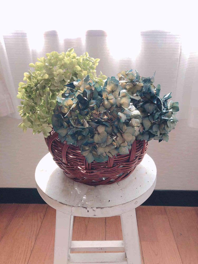 ドライフラワーの紫陽花、色がアンティーク調な感じで、すごくいい味出ていますね✨