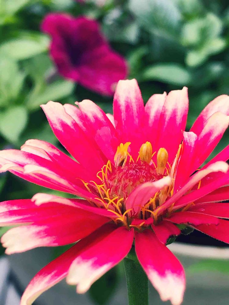 昨日のジニアの色違い、ピンクがようやく咲いた😊