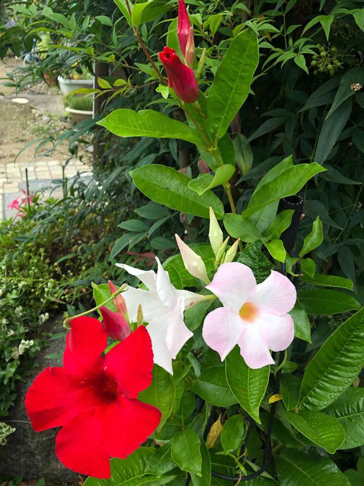 赤と白のマンデビラ 行灯仕立てにしてみました❣️
