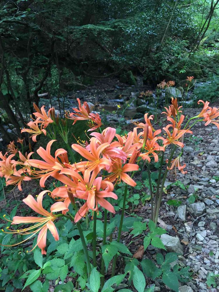 九州の井原山の中腹に見られるヒガンバナ科のお花です。登山道の両脇に群生してます。オレンジ感が際立ってとても綺麗です😊