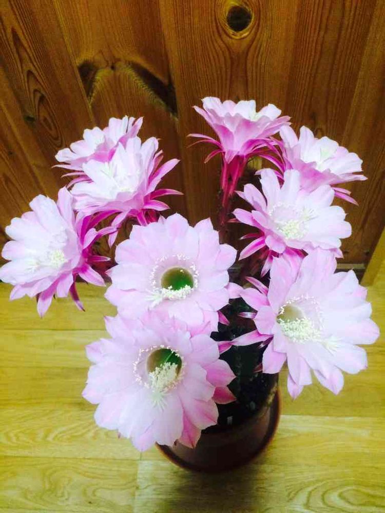 サボテン 長盛丸 9個の蕾が一度に咲いたフォトです。