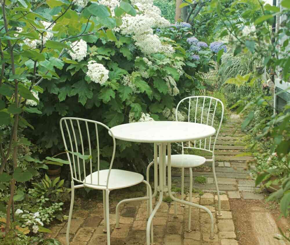 アジサイとガーデンテーブル&チェアとの好きなアングル。