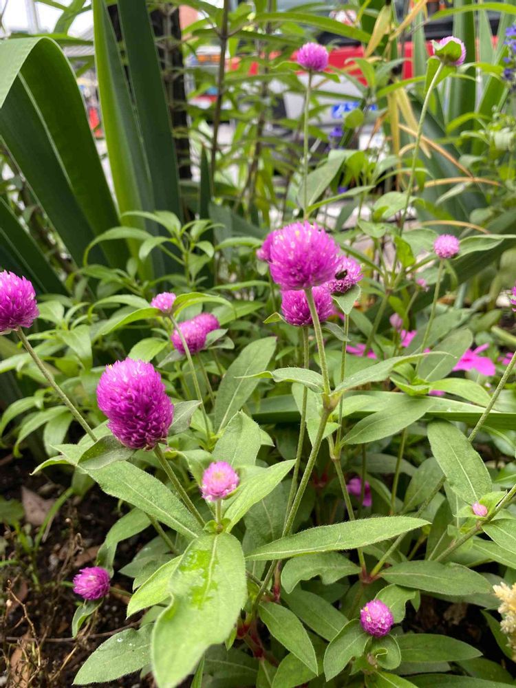 千日紅はまん丸全体が花かと思いきや、中に小さい黄色いのが花だそうです😅