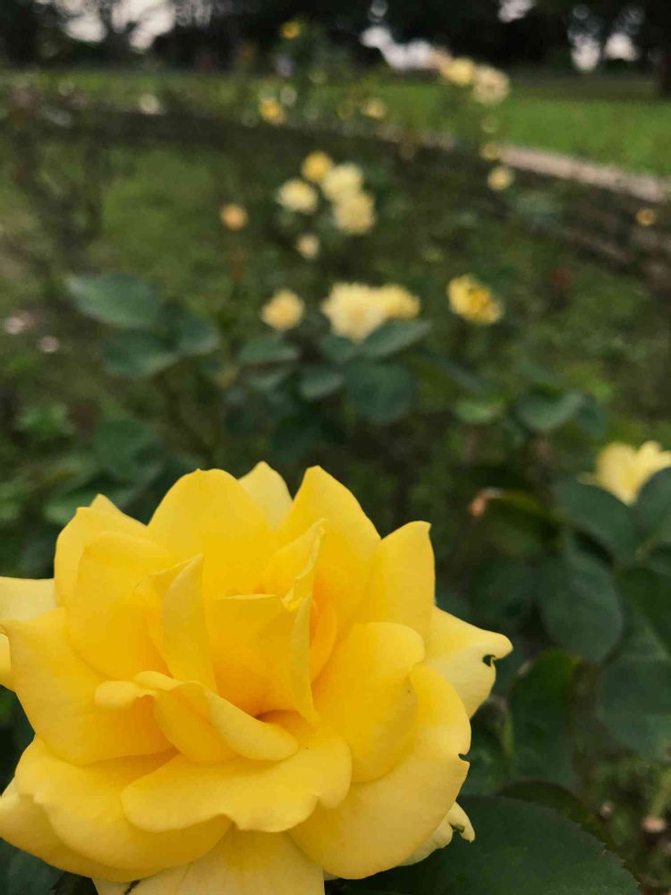黄色く咲くこちらの薔薇は伊豆の踊子という名前のようです🌹