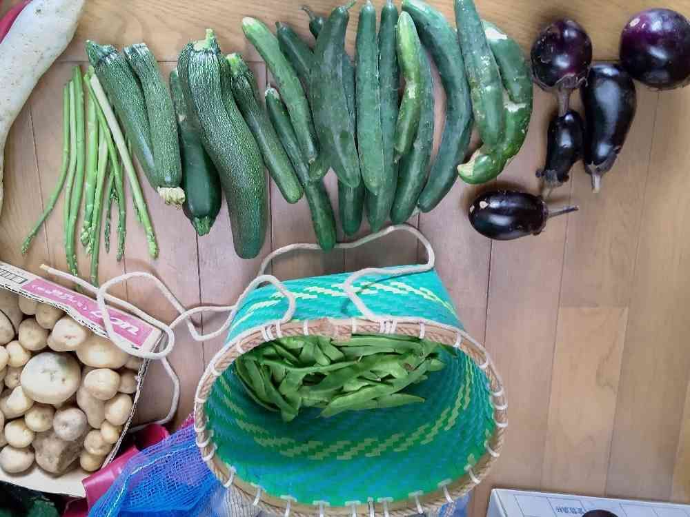 沢山の夏野菜収穫、苦労が報われる至福の時ですね
