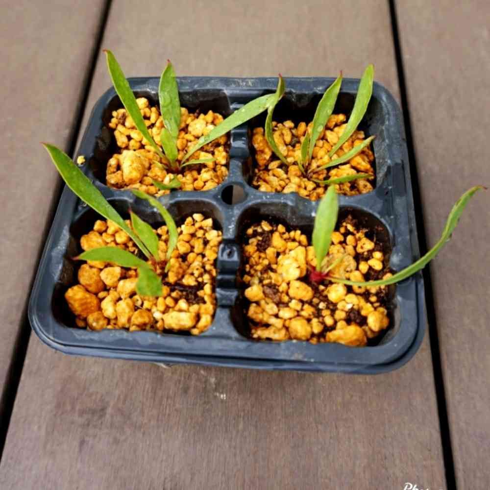 種ですか?!芽がでただけでも凄いですね😅一度だけ苗と花を見た事があります。濃い赤系の花。針針の葉✨✨✨一目惚れしましたね❣️是非とも育ててみたいです。うちもルートンでテロペア挿木してますよ。