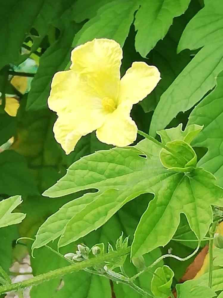 ゴーヤの葉っぱは、手のひらみたいです。😁