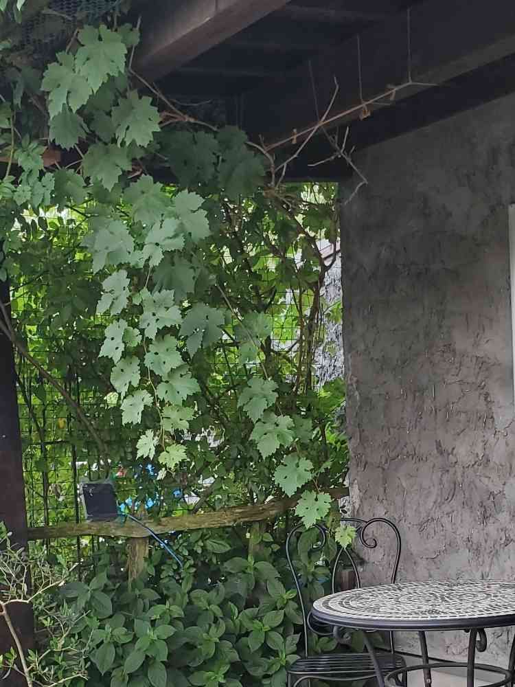 建物、エイジィング塗装のアンティークな外壁に緑が凄く合ってますね✴️